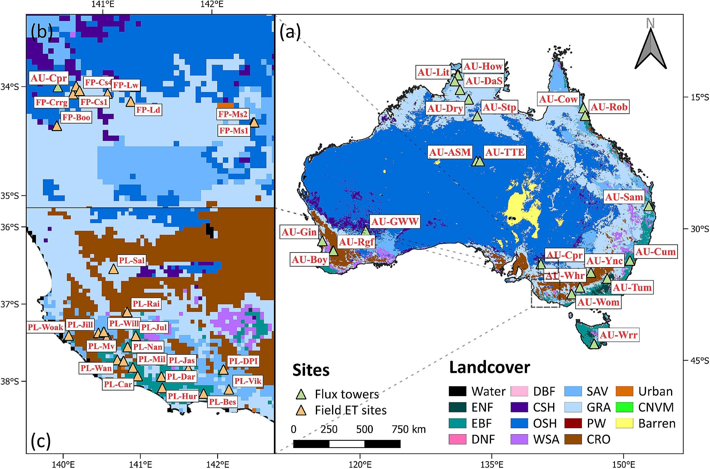 Flux towers and sap flow measurements sites for validating SIF driven ET models